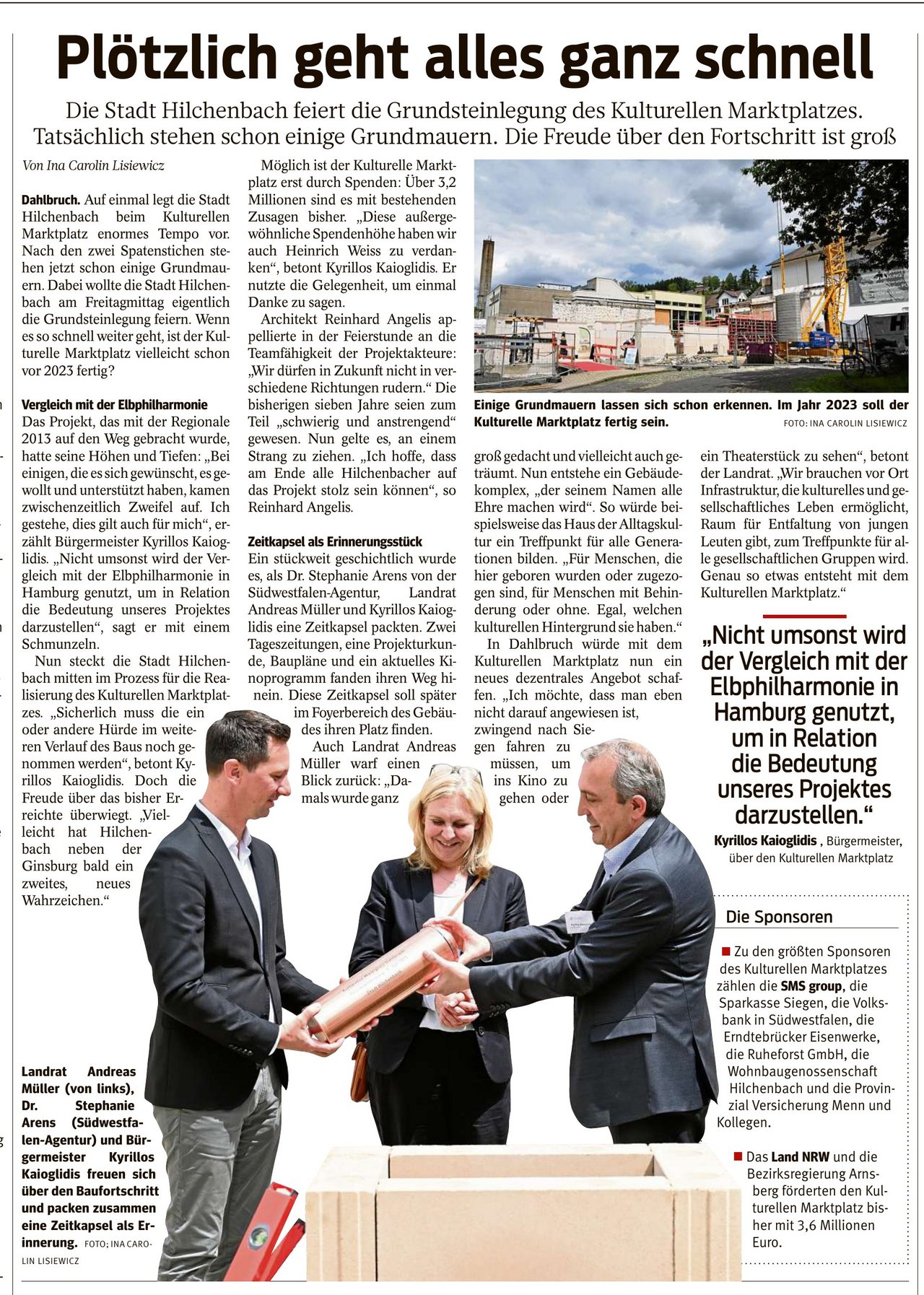 "Wir Grüne stehen seit der ersten Stunde hinter dem Kulturellen Marktplatz, freuen uns, dass Politik und Verwaltung nun auch geschlossen dahinter stehen und drücken die Daumen für schnelle Fortschritte bei den Bauarbeiten. Das kann richtig gut werden - für unsere Stadt und die ganze Region Südwestfalen!"