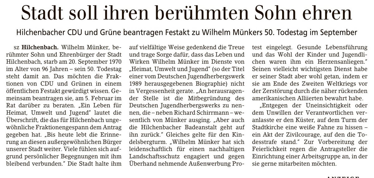 "Wilhelm Münker, der 'erste Grüne' unserer Stadt"