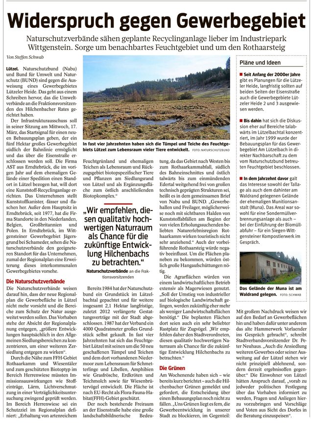 Widerspruch gegen Gewerbegebiet Lützel
